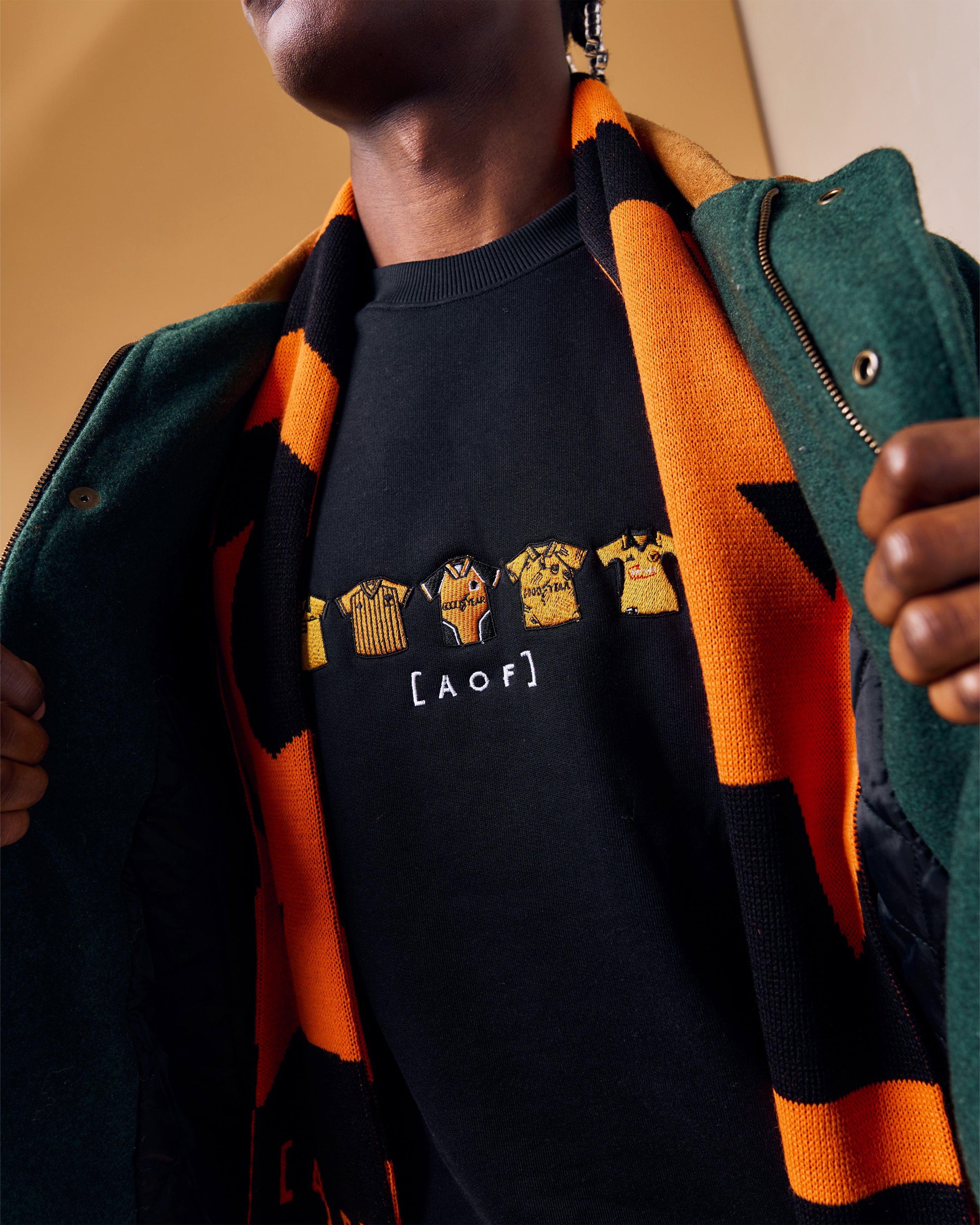 Graphic Design: The fabric of football history. Over 25,000 stitches, 30 minutes of embroidery. A collection of classic football shirts